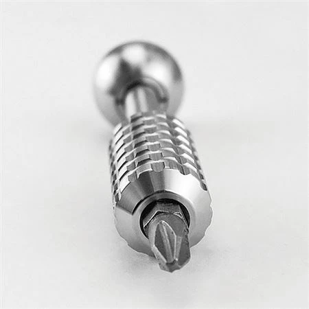 Model – ACN0045SW. AuCon 0045SW – Titanium Knife Tool 5.0 SW. 3″ overall. Stonewash finish titanium construction. 0.79″ ball diameter. Double bearings system. Anti-roll shape. Fully disassembling construction. Wide contract grip. Zero point marks (4 x 90 degrees). Magnetic bit holder. Comes packaged in plastic tube. Made in China.