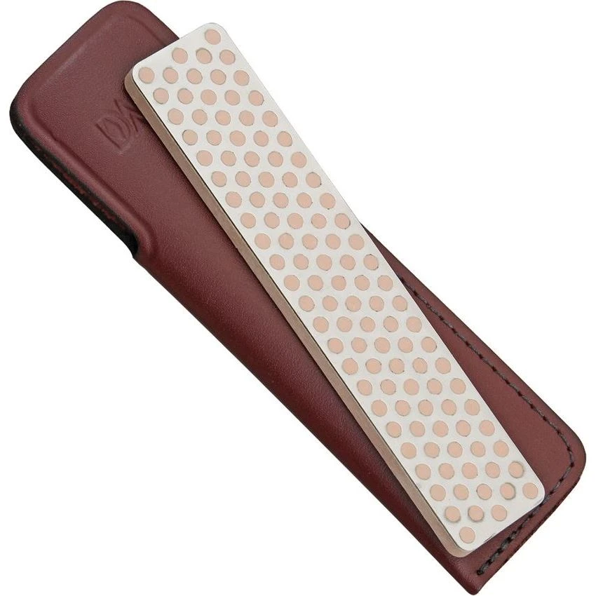 Model – DMTW4EE. Tan Xx Fine Grit Pocket Diamond Stone. Measures 4.38 inch x.88 inch. Tan, extra fine grit. 8000 mesh. Comes with leather sheath. Hang packaged. Proudly made in the USA.