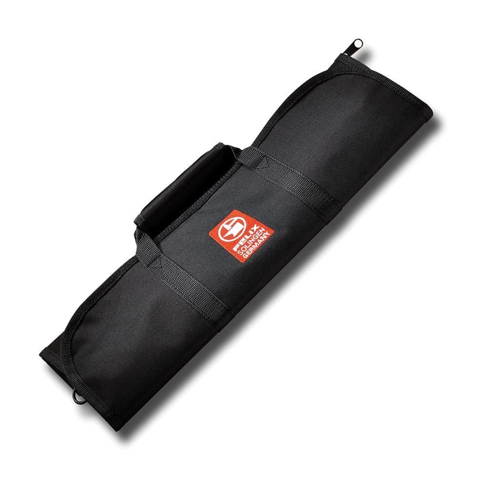 Model – FEL800315. FELIX 8pc Knife Rollbag. Holds 8 kitchen knives. Zipper closure. Top carry handle. Nylon and polyester construction. Color: Black. Bulk packed. Made in China.
