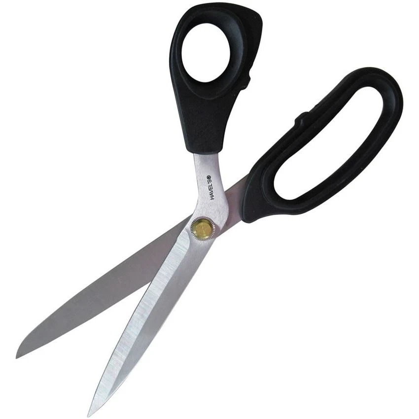 Model – HV38002. Serrated Dura-Shears. 9 inch overall. Teflon coated AUS-8 stainless blades. Black ABS handles. Non-slip serrated blade. Pivot adjustment screw. Clam packed. Made in India.