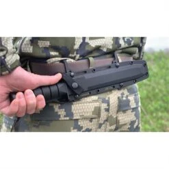 Model – KA1292. Ka-Bar 1292 – D2 Extreme Fixed Blade. 12″ (30.48cm) overall. 7″ (17.78cm) black powder coated D2 tool steel clip point blade. Black Kraton handle. Stainless guard and pommel. Black polymer belt sheath. Boxed. Proudly made in the USA.