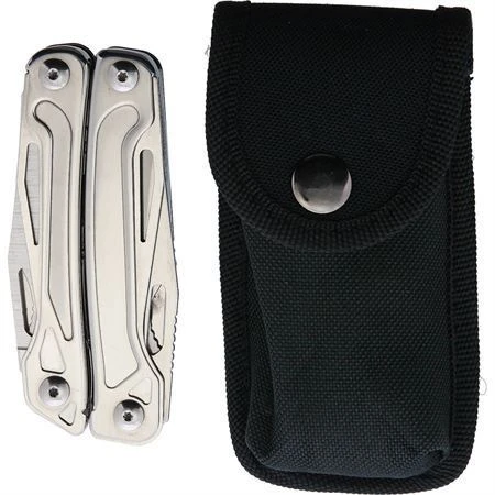 Model – KTZMT75. Katz MT75 – Multi Tool. 3.75″ closed. 6.25″ overall. Stainless handle. Tools include: Needlenose pliers l Pliers l Wire cutter l Serrated blade l Large blade l Saw blade l Phillips screwdriver l Flat head screwdriver l Small screwdriver l Can opener l Bottle opener l File l Scissors. Black nylon belt sheath. Clam packed. Made in China.