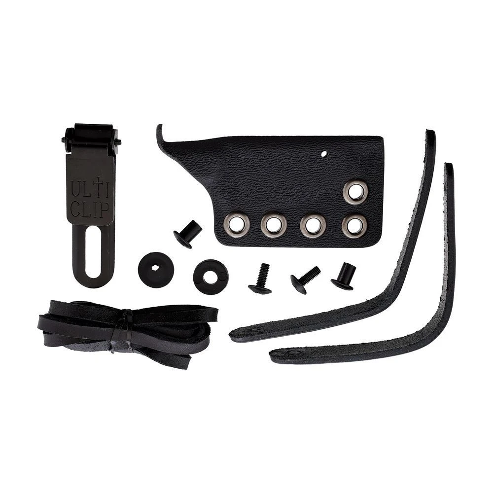 - Includes ULTICLIP slim 2.2, leather laces for neck and belt carry, 2x mounting screws and spacers