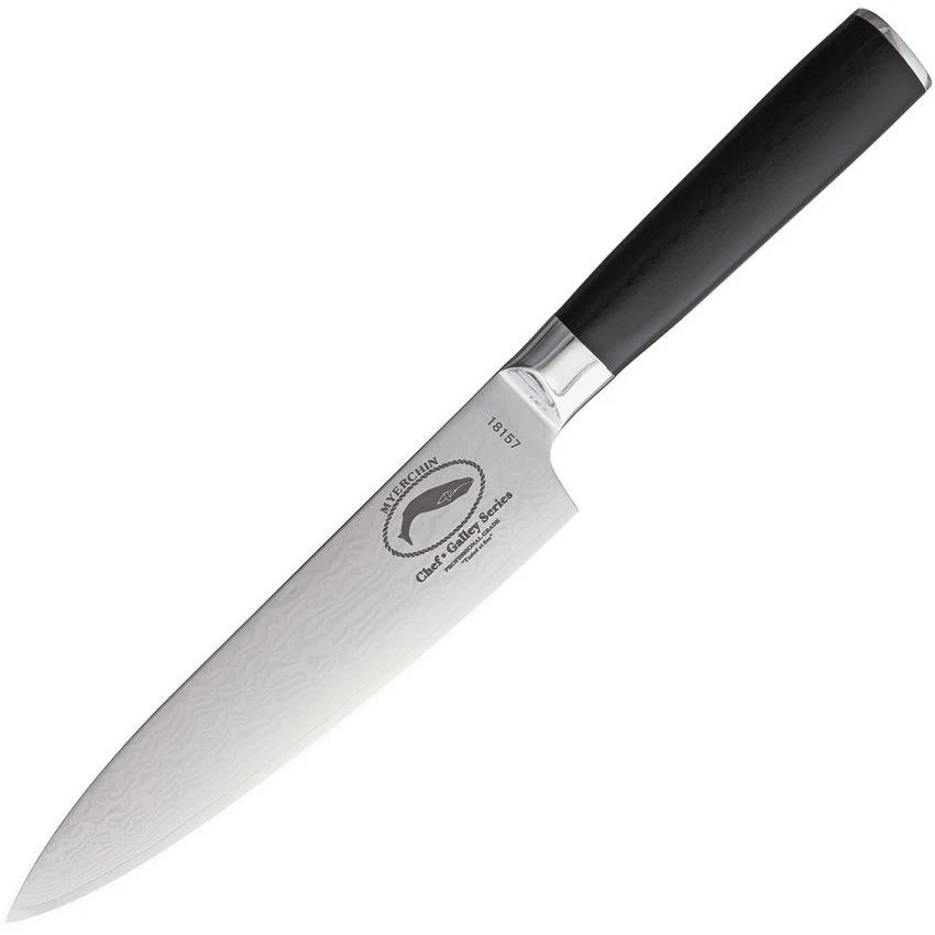 Model – MYG100. Galley Chefs Knife Damascus. 13.25 inch overall. 8 inch Damascus steel blade. Black G10 handle. Boxed.
