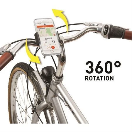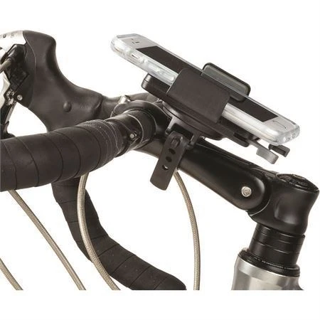 Model – N05096. Squeeze Smartphone Mount. Clamps to fit most phones with or without a case 2.3 inch to 3.6 inch wide. Fits most bicycle bar diameters. Use in portrait or landscape orientation with full 360 degree rotation. Hang packaged. Made in China