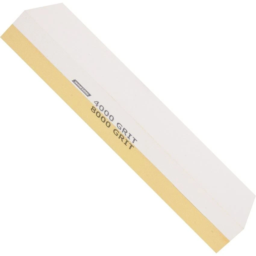 Model – NT336. Waterstone. Combination 4000/8000 Grit. 8 inch x 3 inch x 1 inch Benchstone. Uses water as a lubricant and flushing agent. Easier to clean than oilstones. Won’t leave an oil residue. Ideal for sharpening woodworking tools, knives, cutlery, and other blades. Durable blue plastic storage box.