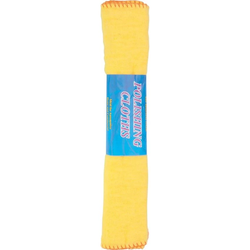 Model – PA990004. Polishing Cloths – 4 Pack. Contains four yellow 100% cotton cloths measuring approximately 12 inch x 12 inch. Ideal for automotive, home and commercial use.
