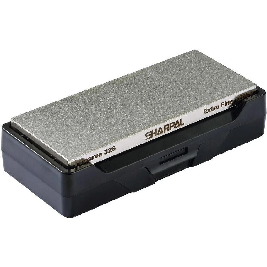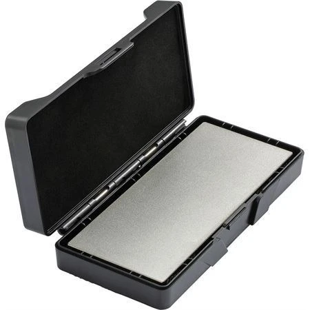 Model – SHP156N. Dual-Grit Diamond Whetstone. Dimensions: 6.5 inch x 3.5 inch x 1.5 inch. Grit: Extra fine l Coarse. MirrorFlat technology guarantees even contact with knives and tools. Includes storage box with non-slip rubber pad that can be used as a stone base while sharpening. Angle Pyramid sharpening angle guide. Boxed.