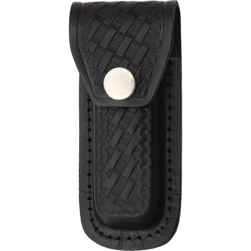 - Sheath 1143 – Folding Knife with Black Leather Embossed Basketweave Design