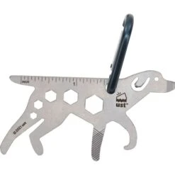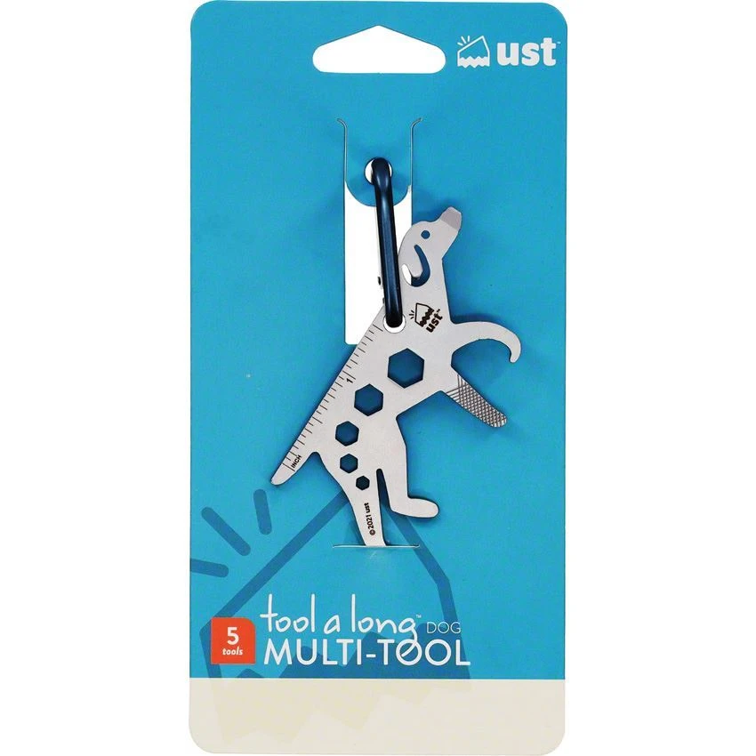 Model – WG26285. UST Tool-A-Long Multi-Tool. 3″ overall. Tools include: Carabiner l Ruler l File l Hex/Bit driver l Bottle opener l Screwdriver tip. Dog-shaped. Stainless construction. Made in China.