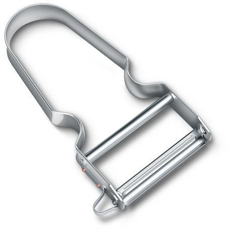 Model – VN60900. REX Peeler Silver. 4.25 inch (10.8cm) overall. Stainless construction. Boxed with hanging tab. Made in Switzerland.