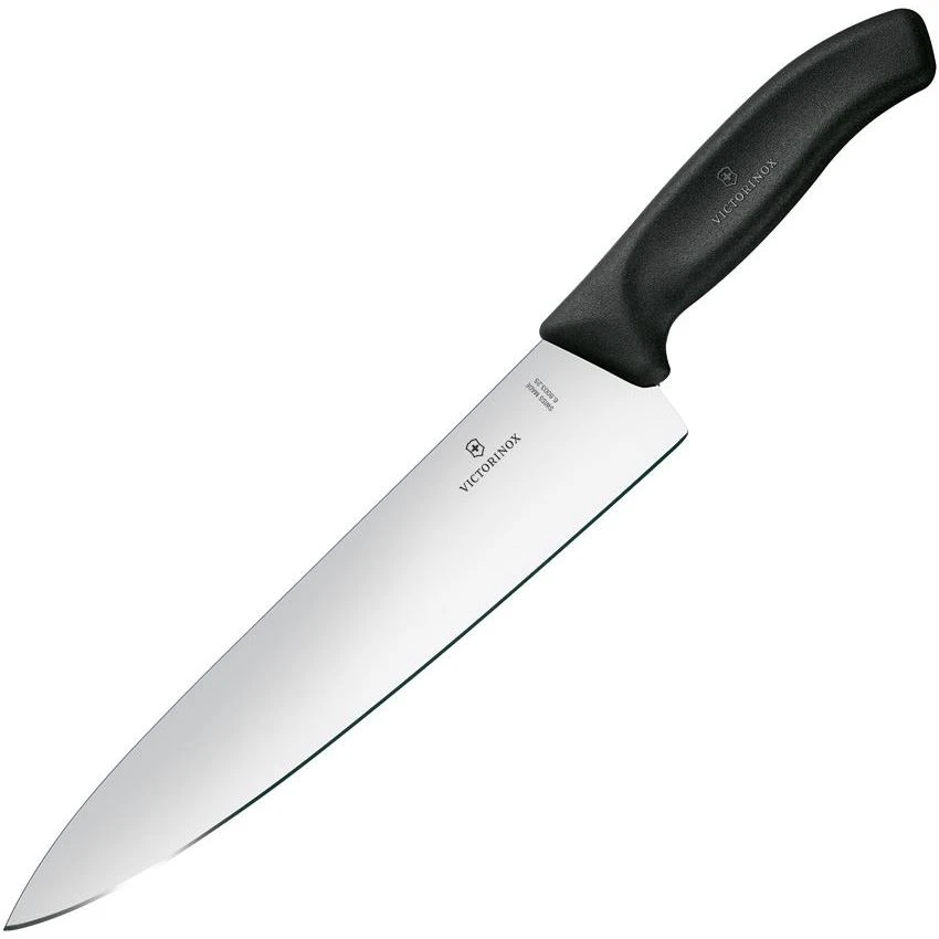 Model/Part Number – VN6800325X1. Swiss Army Knives Chef’s Knife 10in Black. 15.25″ (38.74cm) overall. 10″ (25.4cm) satin finish stainless blade. Black TPE handle. Dishwasher safe. Boxed with hanging tab. Made in Switzerland.