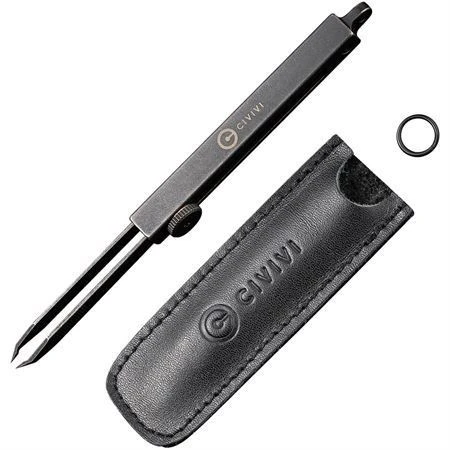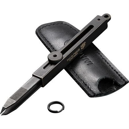 Model -CIVC19062BA. Tac-N-Tweeze Tweezers. Open length: 4.75″. Closed length: 3″. Black stonewash finish stainless tweezers. Black stonewash finish brass handle. Black leather sheath. Designed by: Bob Terzuola. Boxed. Made in China.